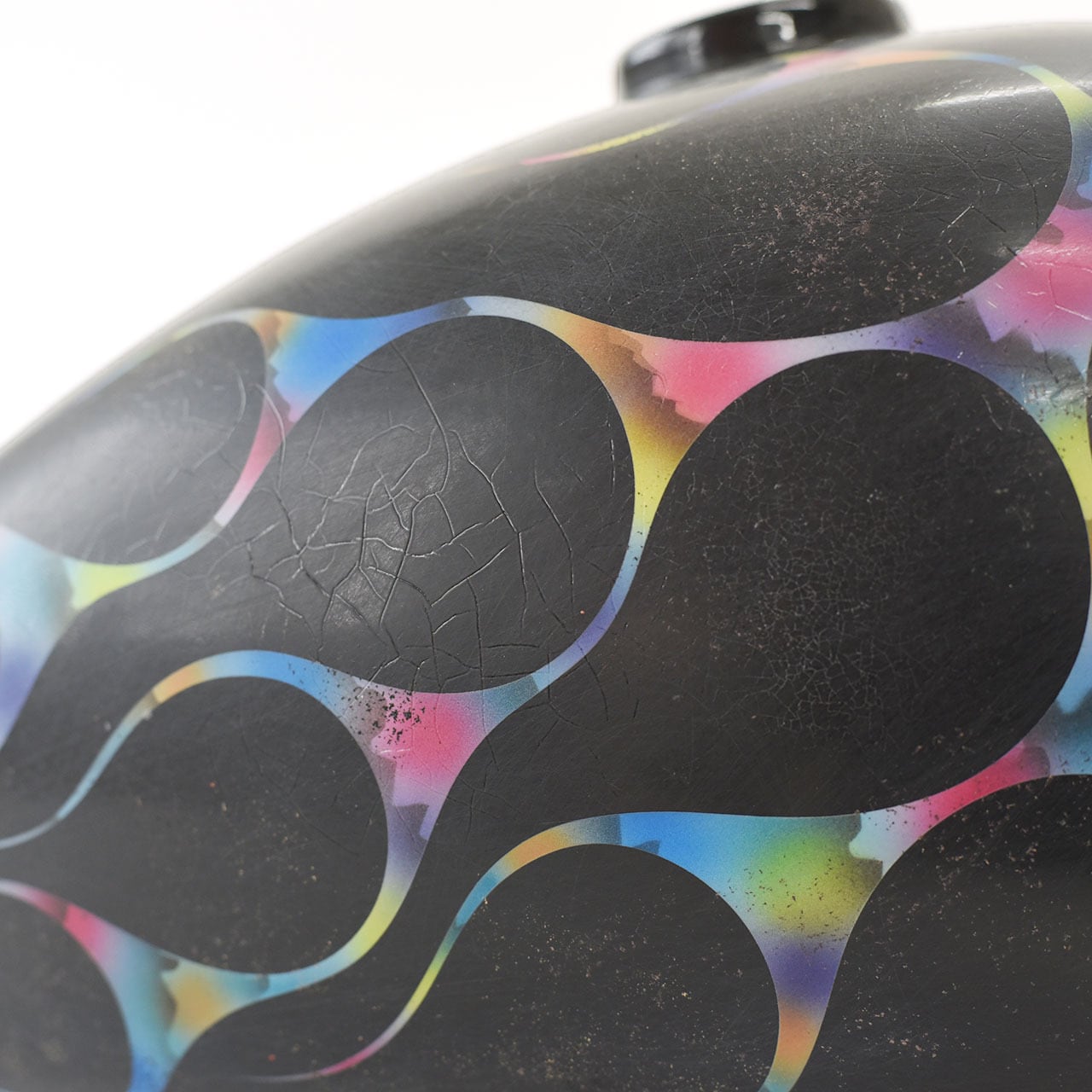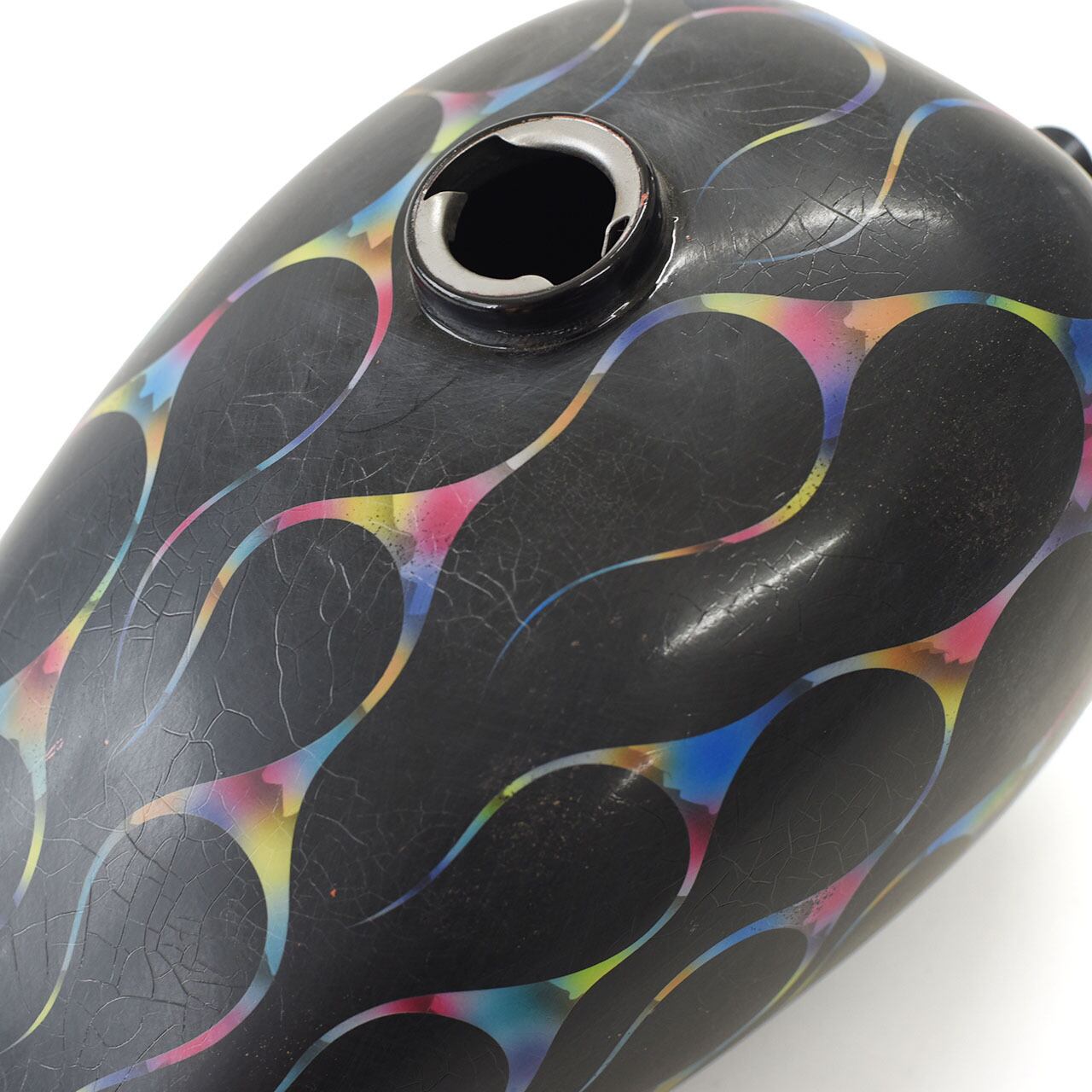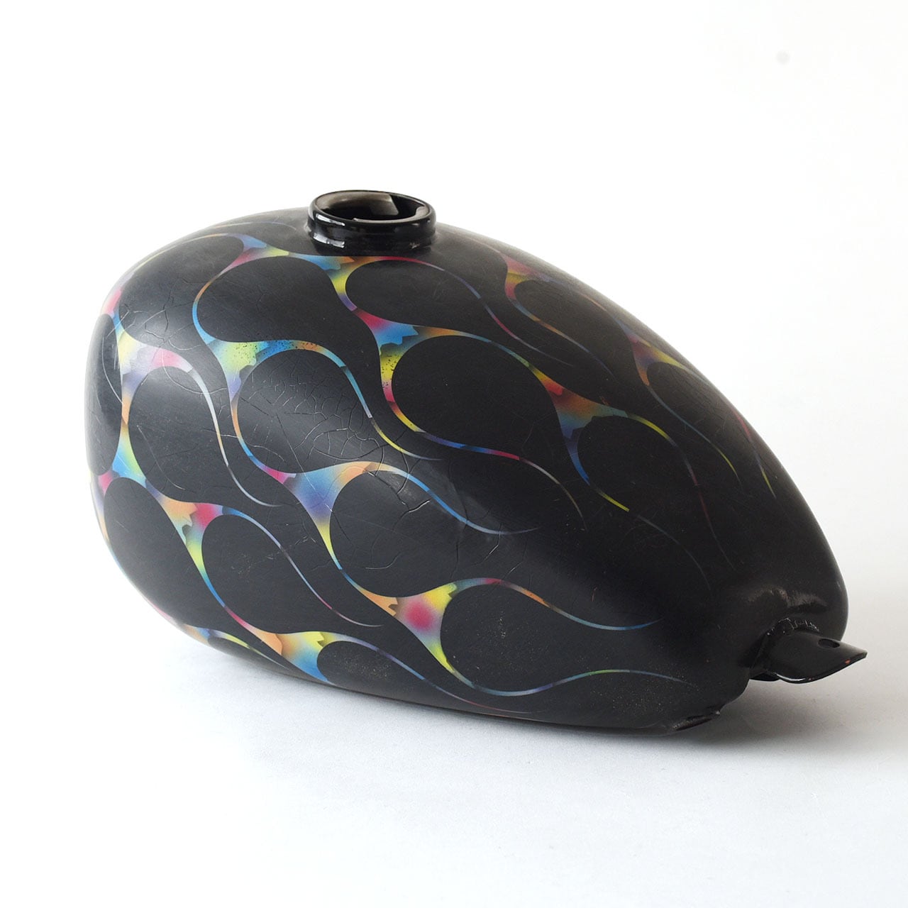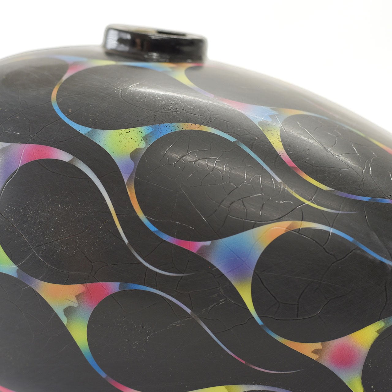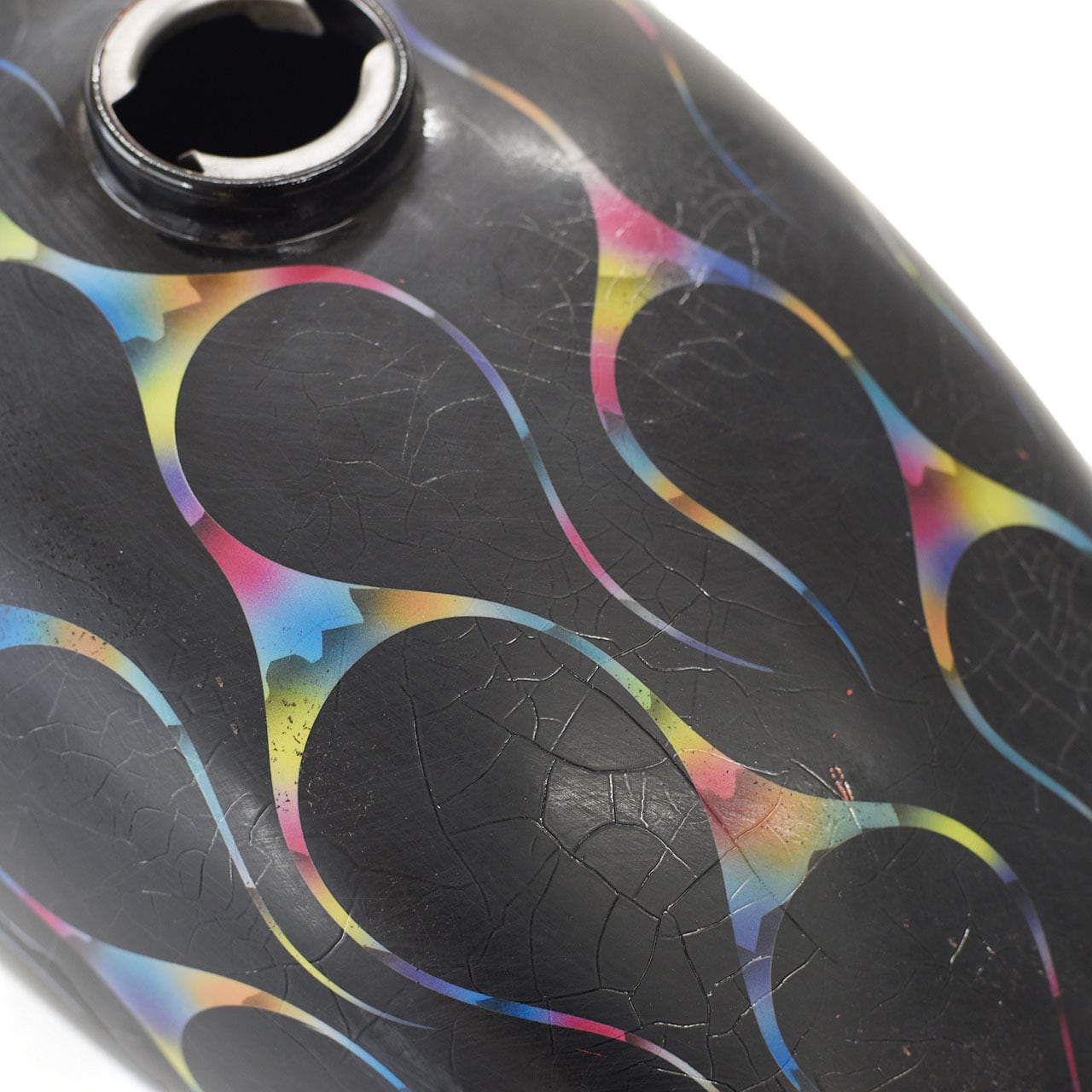 ペイント済みピーナッツペイント 黒ベース細フレイムスカラフル模様入り