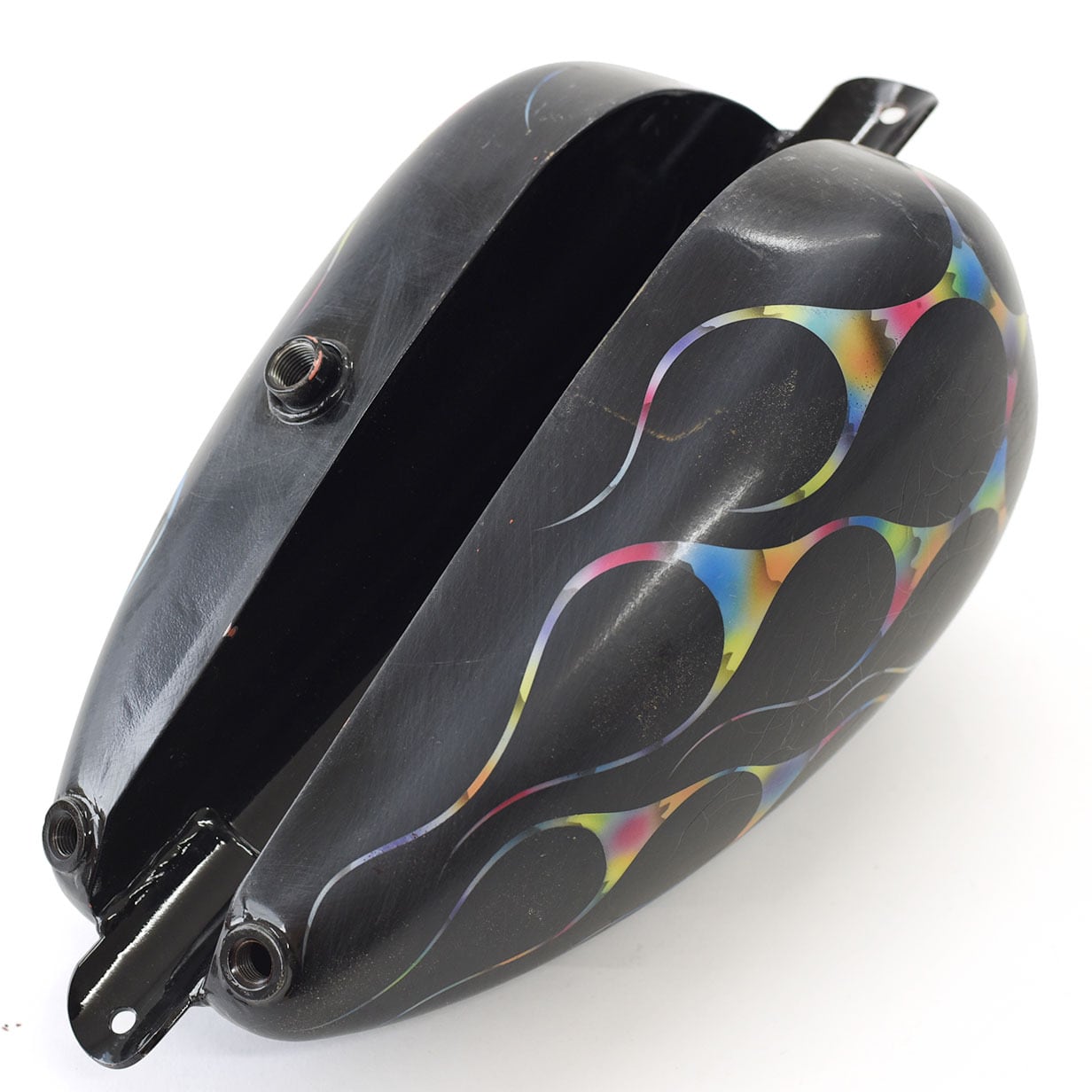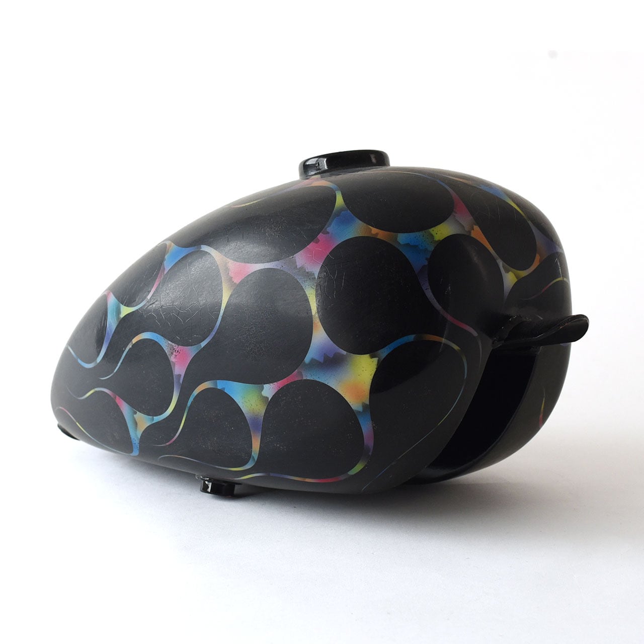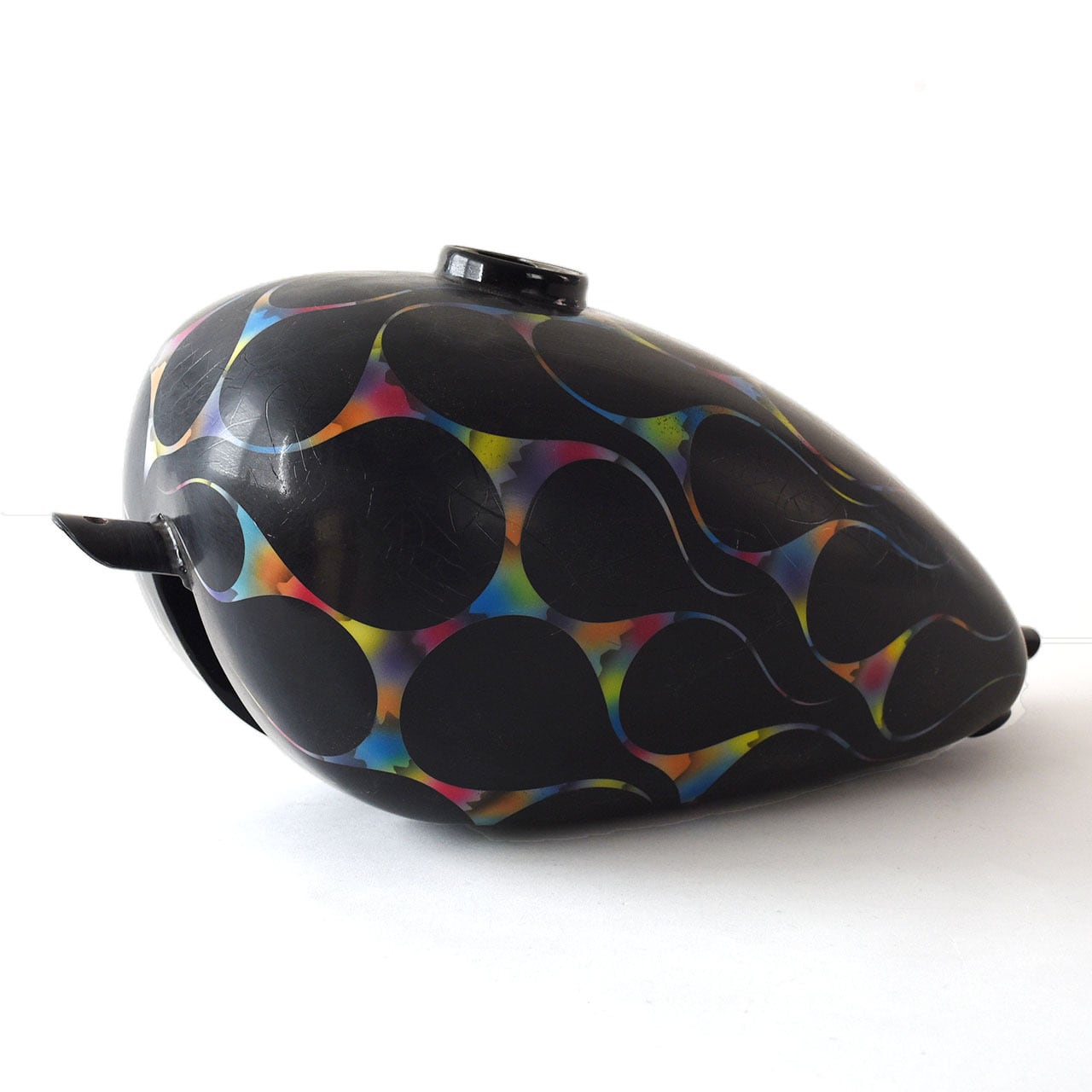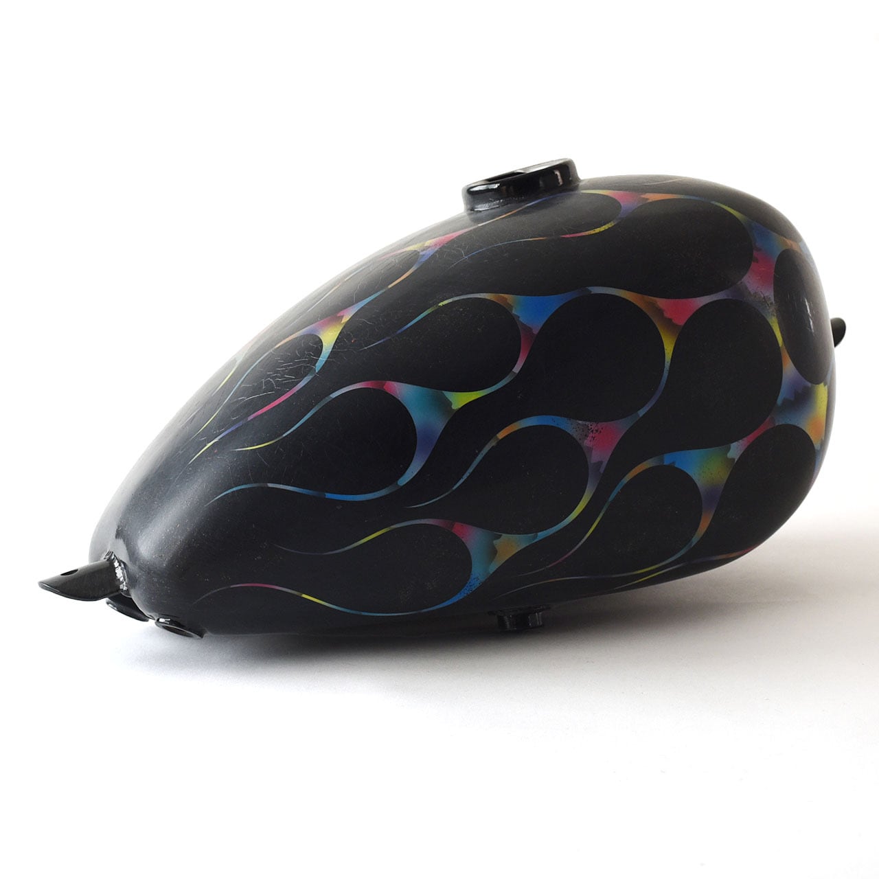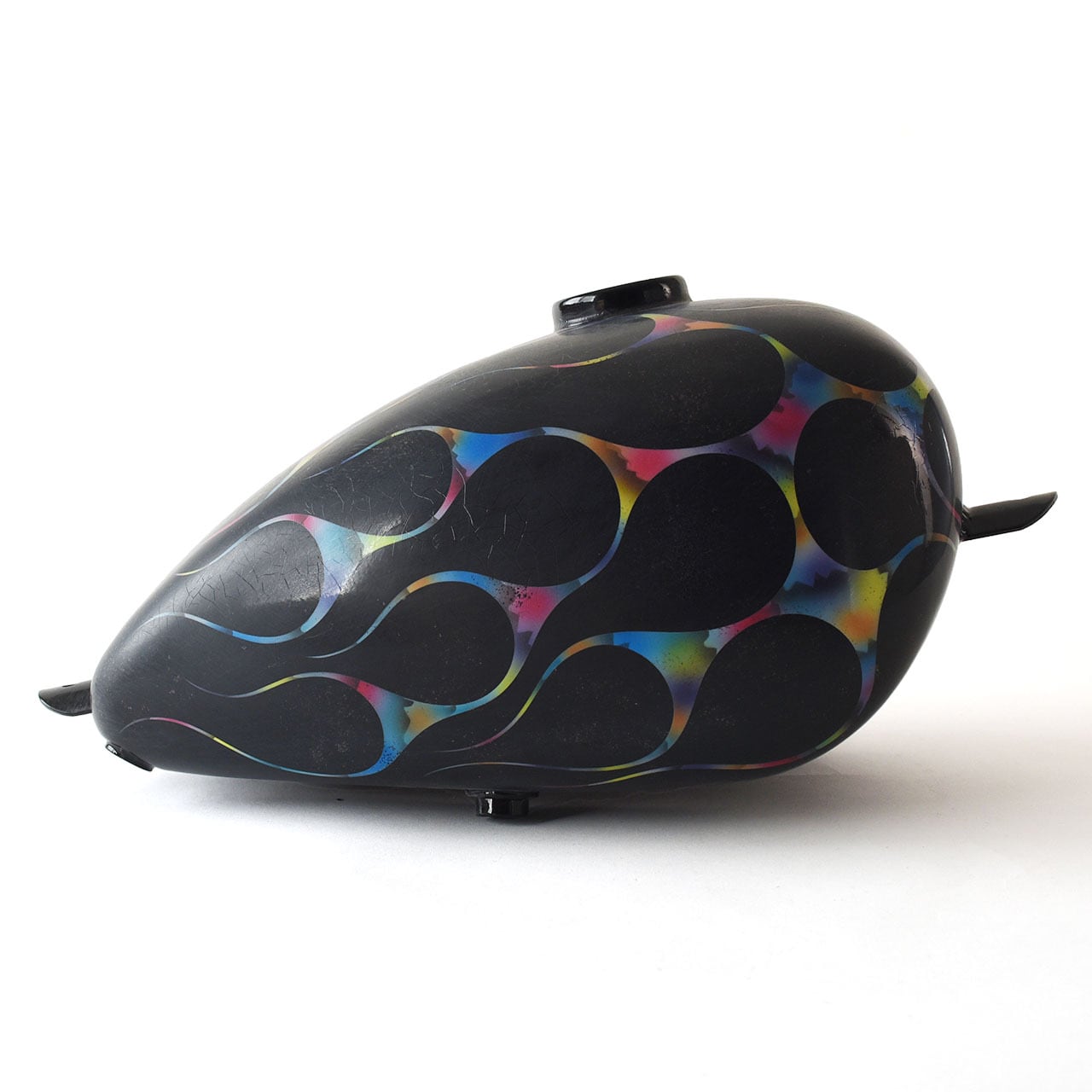 ペイント済みピーナッツペイント 黒ベース細フレイムスカラフル模様入り